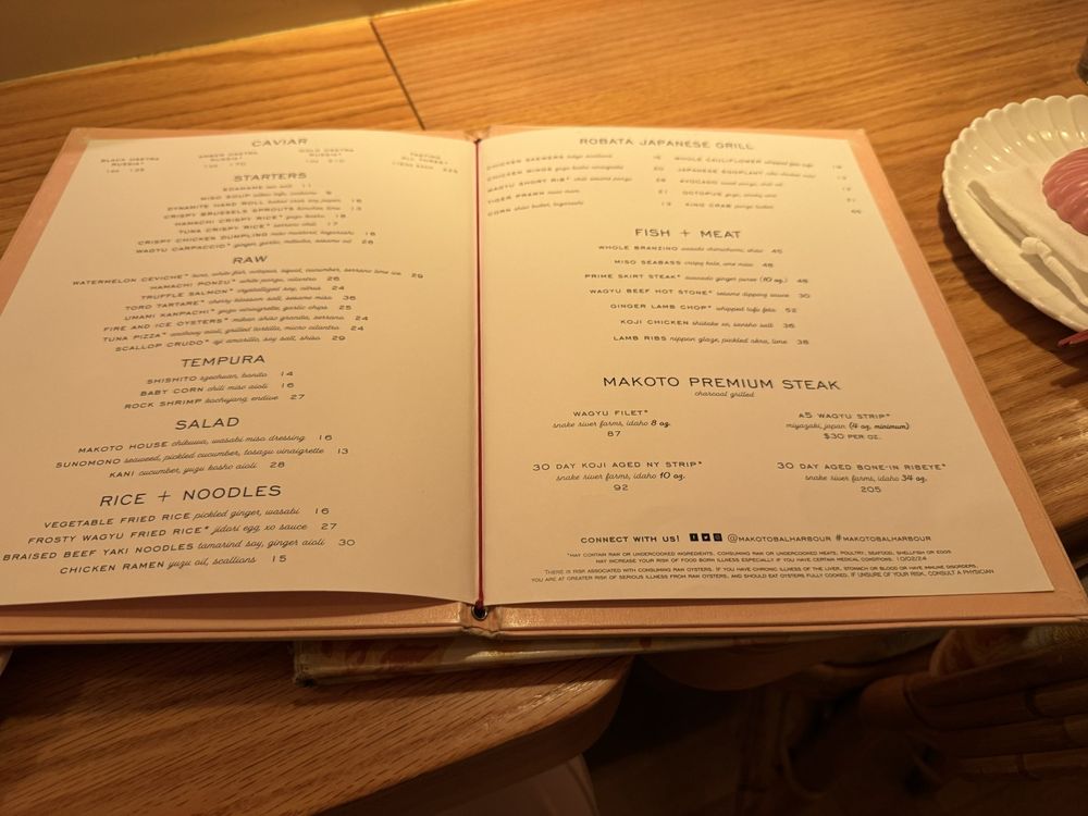 Introducing Makoto, a Japanese restaurant in Miami Beach, FL, that offers a trendy and vibrant dining experience. Makoto provides a wide range of menu options, including Bento boxes, cold dishes like Toro Tartare and Watermelon Ceviche, and hot dishes like Makoto Ramen and Rock Shrimp Tempura. Customers rave about the Braised Beef Yaki Noodle and Frosty Wagyu Fried Rice. The lychee martinis are a must-try, according to patrons, and the service is described as attentive and polished. The ambiance at Makoto is praised for being chic and stylish, with a great selection of music. Overall, Makoto delivers an outstanding culinary experience with excellent dishes, top-notch service, and a lively atmosphere, making it a go-to spot for Japanese cuisine enthusiasts.